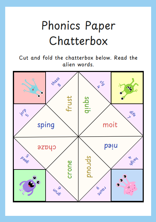Shop Categories: All Continuous Provision Phonics Reading Writing Science All | Continuous Provision | Phonics | Reading | Writing | Science | Phase 5 Domino Game £1.50 Split Digraph Phonics Flowers £2.50 Phase 5 Tricky Words Mirrored £1.00 Seasons of the Year £1.00 Continuous Provision Resources within the KS1 National Curriculum £12.00 Continuous Provision Subject Area Open Ended Questions £5.00 Year 1 Common Exception Words Snakes & Ladders £1.50 Phonics Paper Chatterboxes £3.00 Writing Genre Prompt Mats £4.00 Phase 3 and 4 Tricky Words Mirrored £1.50 Before, During & After Reading Questions £1.00 1. Mock Phonics Screening Check £1.00 2. Mock Phonics Screening Check £1.00 3. Mock Phonics Screening Check £1.00 4. Mock Phonics Screening Check £1.00 5. Mock Phonics Screening Check £1.00 6. Mock Phonics Screening Check £1.00 7. Mock Phonics Screening Check £1.00 8. Mock Phonics Screening Check £1.00 Home Reading Leaflet £2.00